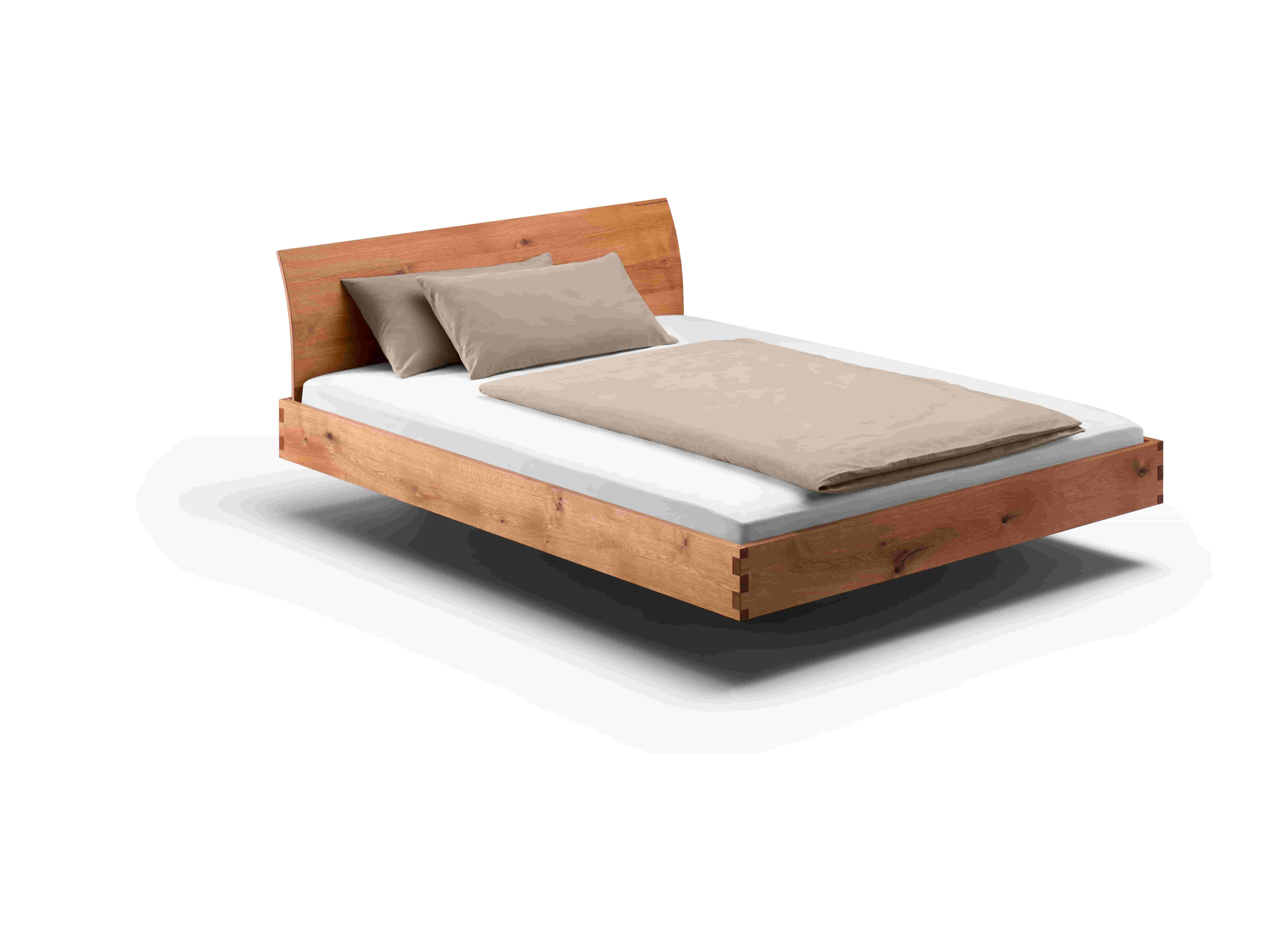Die nach innen versetzten Füße lassen den Rahmen schweben und die metallfreie und die sehr dauerhafte Fingerzinken-Verbindung betont den einzigartigen Charakter dieses Bettes. Das Bett PADIO gibt es entweder ganz ohne Rückenlehne als PURE-Variante oder auch mit einer gebogenen, gewinkelten oder geraden Rückenlehne. „Form follows funktion“ – dieser Designgrundsatz ist im PADIO vortrefflich umgesetzt.