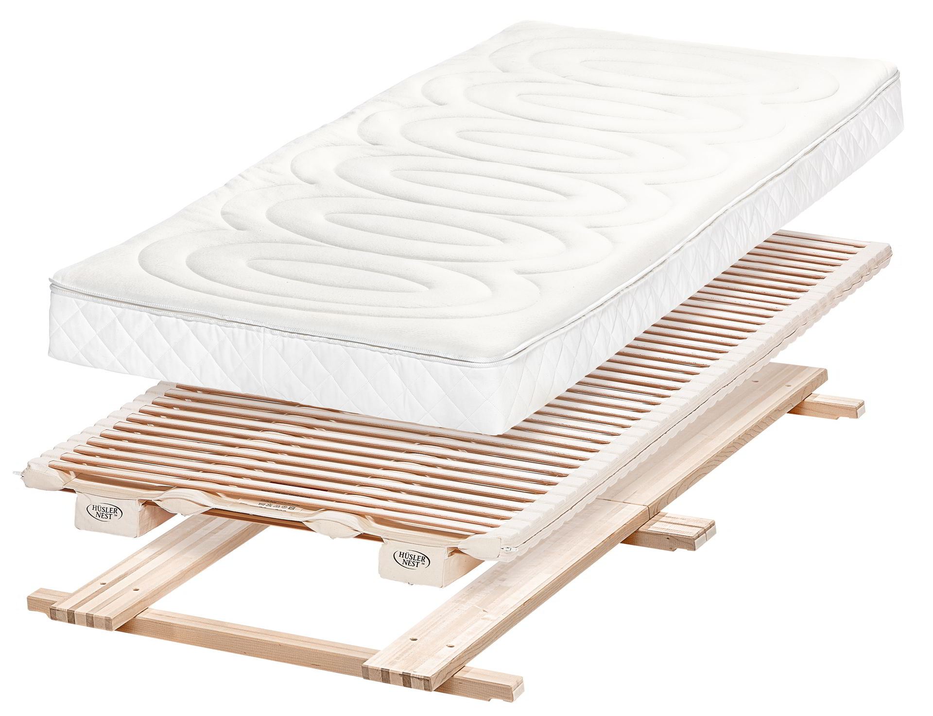 Das «DeLuxe» baut auf dem traditionellen «Original» von Hüsler Nest auf. Der Unterschied liegt darin, dass beim «DeLuxe» Auflage und Matratze zusammen mit einer gepolsterten Hülle eine Einheit bilden. Die beiden Elemente sind über einen Reisverschluss miteinander verbunden und lassen sich so für die Reinigung oder Durchlüftung bequem entfernen.