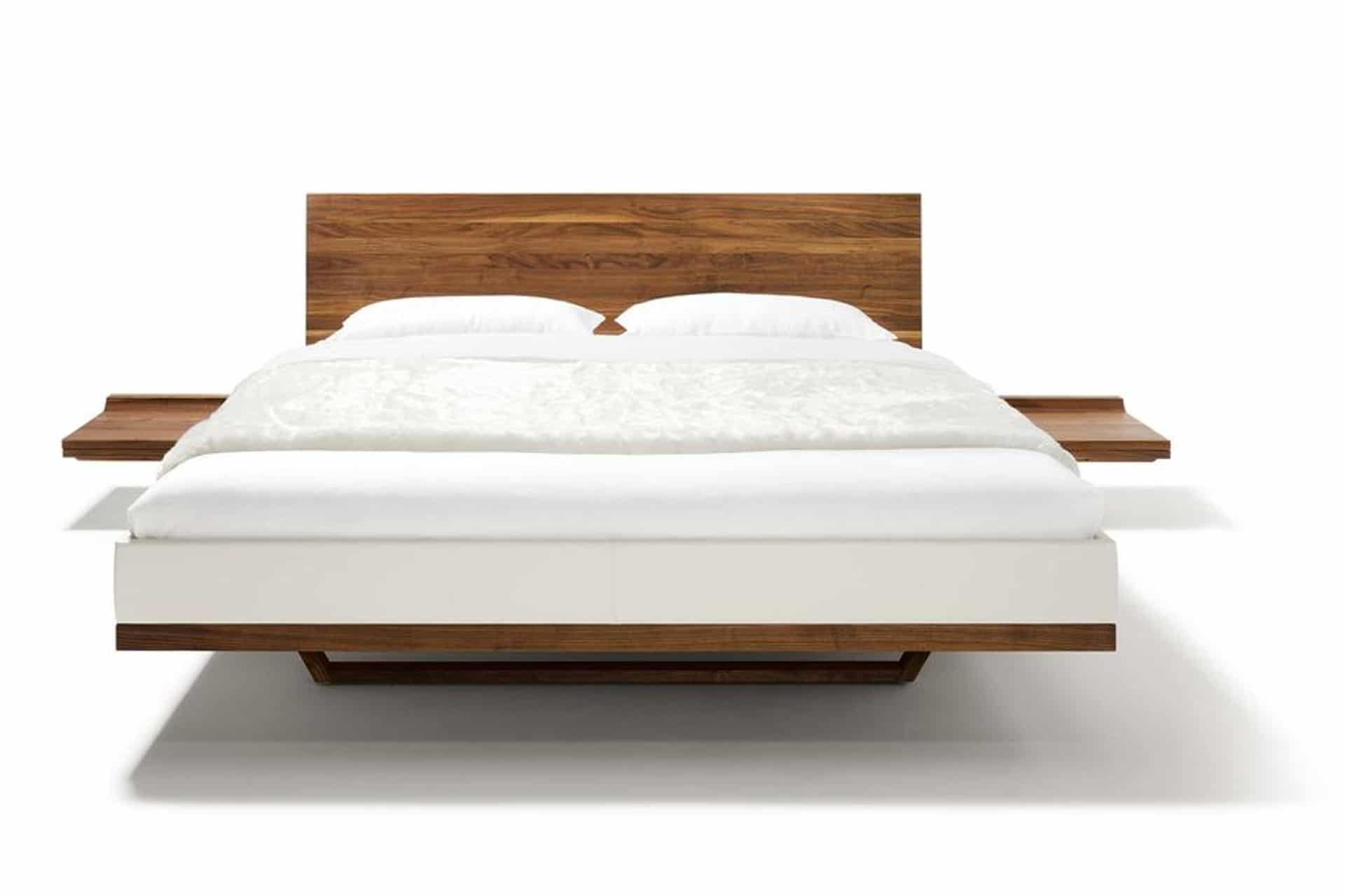 Ein optisches Highlight ist die schwebende Bettkonsole mit Lade. 9 hochwertige Hölzer stehen zur Auswahl für das Bett RILETTO.